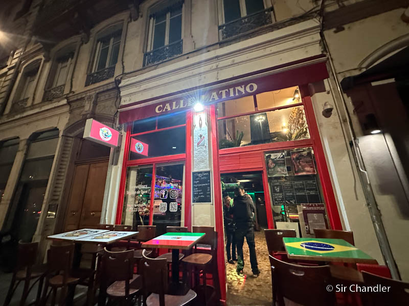 Pero quiero decir que me pude haber quedado en el hotel a ver el partido, pero la idea era poder vivirlo junto a otros argentinos. Empecé a buscar… los lectores me dieron datos. Y un lugar donde se reunían los que vivían en Lyon era un café llamado CALLE LATINO. Así que ahí es donde fui con el tranvía.