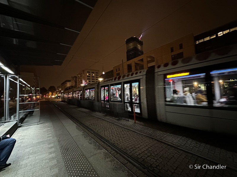 El tranvía similar a otros en Francia. Valor 1,90 euros con una hora de viaje para traslados.