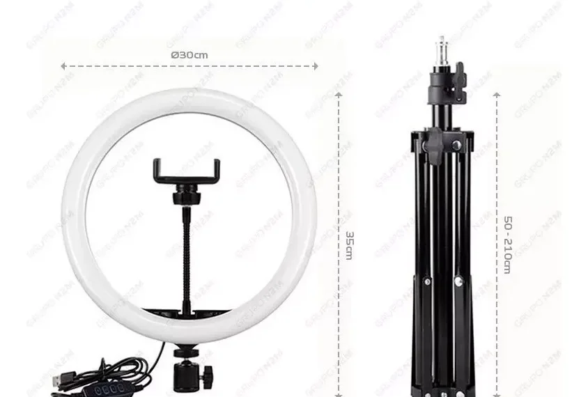 El aro de luz LED tiene un diámetro de 30 cm, lo que lo hace ideal para iluminar de manera uniforme un área considerable. Este tamaño es perfecto para aplicaciones que van desde retratos hasta transmisiones en vivo. El diseño circular del aro permite una distribución homogénea de la luz, eliminando sombras no deseadas y proporcionando un brillo natural. Además, está equipado con un difusor que suaviza la luz, evitando deslumbramientos y reduciendo la fatiga visual durante sesiones prolongadas.