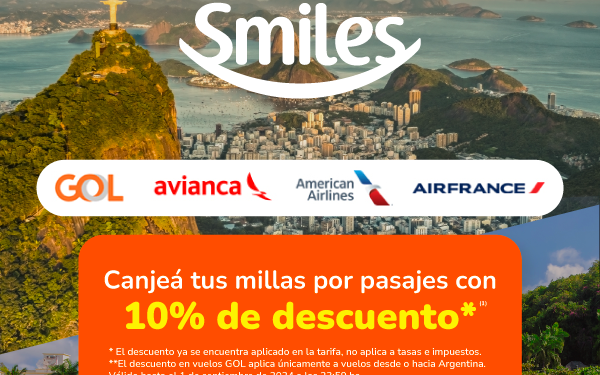 Smiles, el programa de fidelización que ofrece beneficios a sus miembros, ha lanzado una promoción especial para los residentes en Argentina. Entre el 26 de agosto y el 1 de septiembre de 2024, los miembros registrados en Smiles podrán canjear sus millas por pasajes con un 10% de descuento. Esta oferta es válida para vuelos de las aerolíneas GOL Linhas Aéreas, Avianca, American Airlines y Air France.