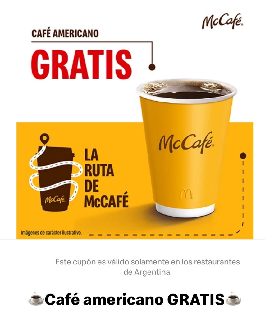 - Canjealo en el Local: Presentá tu cupón en cualquier restaurante McDonald’s de Argentina y disfrutá de un Café Americano de 300 ml totalmente gratis.