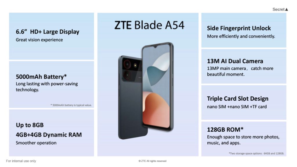 Características destacadas del ZTE Blade A54: