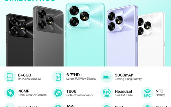 Un detalle que llama la atención: el diseño. El UMIDIGI A15C tiene un cuerpo estilizado, con acabado metálico en tonos vibrantes como azul celeste o verde menta, y un módulo de cámaras que recuerda a celulares de gamas mucho más altas.