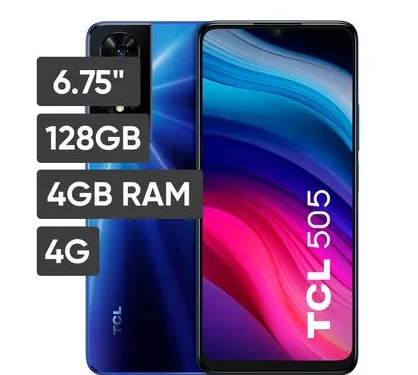 El protagonista de esta oferta es el TCL 505, en su versión de 4GB de RAM + 4GB de expansión virtual y 128GB de almacenamiento interno, un combo muy atractivo para usuarios que buscan fluidez sin gastar una fortuna.