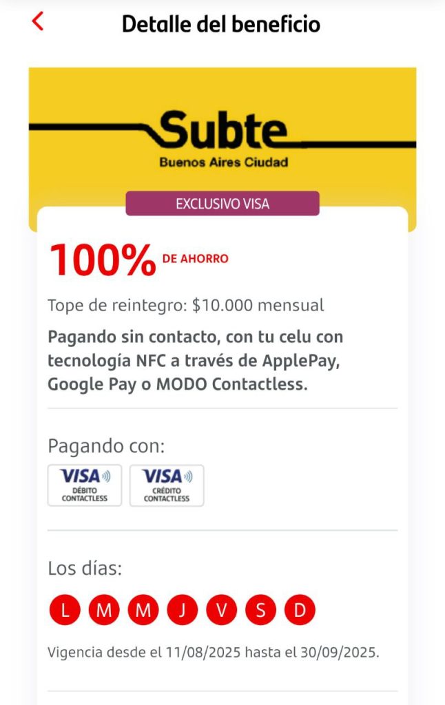 Como recomendación, quienes aún no tengan cargada su Visa en Apple Pay, Google Pay o MODO deberían hacerlo cuanto antes para aprovechar este beneficio antes de que termine el 30 de septiembre. Viajar en el subte porteño nunca fue tan fácil y económico, ¡y todo desde el celular!