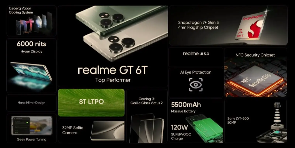 El componente estrella es su panel LTPO de 6.78 pulgadas. Mientras la mayoría de los competidores sufren para verse bajo luz directa, el GT 6T alcanza picos de 6000 nits, una cifra récord en la industria. Esto no es solo para “encandilar”: permite una gestión de color HDR10+ profesional y una fluidez variable de 1 a 120Hz que protege la autonomía de la batería de 5500 mAh.