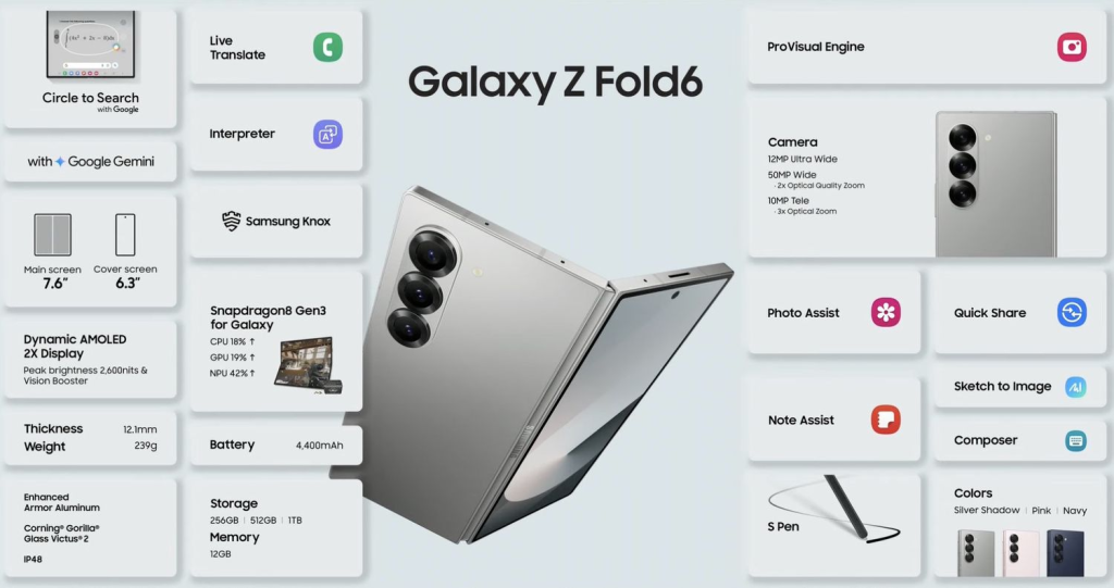 El Fold 6 no es solo una pantalla grande; es un sistema operativo diseñado para la multitarea. Podés tener una videollamada de un lado y tomar notas del otro, o arrastrar archivos entre apps como si estuvieras en una PC. Con el procesador Snapdragon 8 Gen 3 for Galaxy, no hay tarea que lo trabe. Si rastreás ofertas de smartphones hoy, esta es la única que te ofrece una tablet y un celular en el mismo dispositivo.