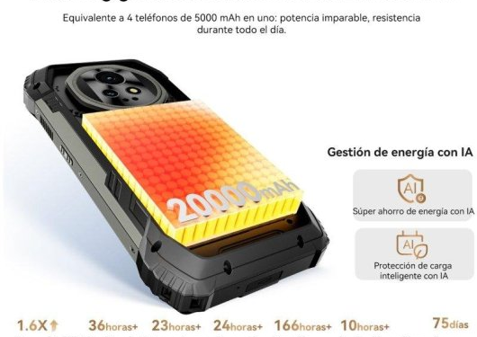 Para proyectar cine durante horas se necesita energía, y Blackview lo sabe. Este equipo viene con una batería de 20.000 mAh, lo que te permite ver hasta 3 películas completas seguidas sin conectar el cargador. Al filtrar las ofertas de smartphones hoy, notarás que su potencia no se queda atrás: cuenta con 5G, una pantalla AMOLED 3.2K para uso normal y un cuerpo rugerizado que soporta caídas, agua y barro.